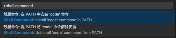 shell command。 - 選擇「殼層命令:在 PATH 中安裝 ‘code’ 命令(Shell Command: Install code command in PATH)」